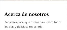 Ejemplo de un Perfil comercial de una panadería, visto desde un dispositivo móvil